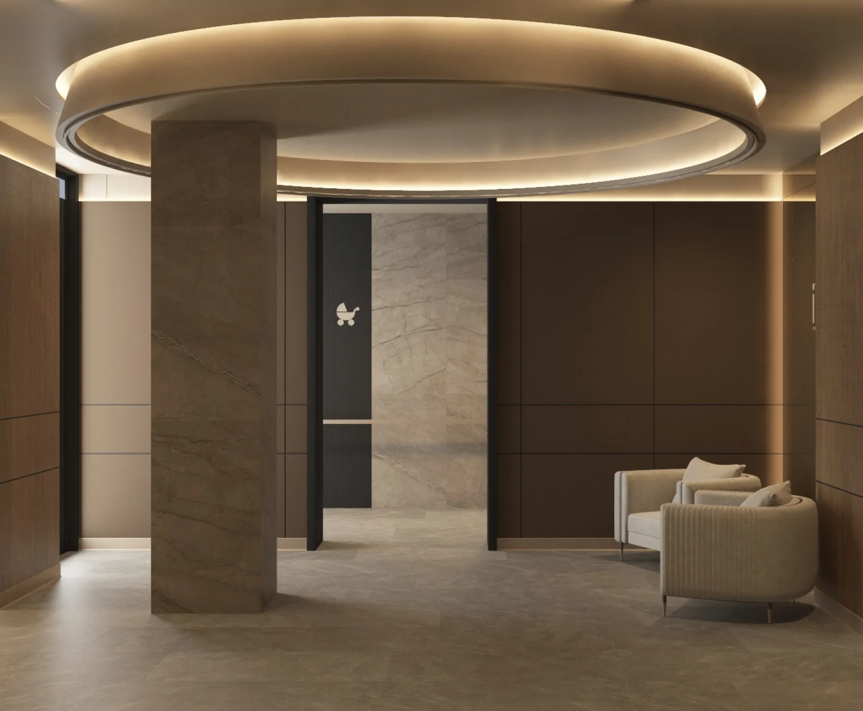 Парадные продуманы с учётом принципа «безбарьерной среды» — вход осуществляется с уровня земли, что создаёт удобство и доступность. Витражные двери и окна наполняют холлы светом, создавая атмосферу легкости и уюта. Прекрасные виды, удобные зоны общего пользования, гостевые парковки и подземный паркинг с прямым доступом к жилым этажам, а также индивидуальные кладовые для сезонных вещей — всё это помогает создать первое, приятное и запоминающееся впечатление о квартале.